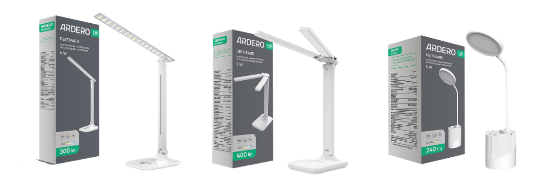- Настільні світлодіодні світильники Ardero DE1739ARD з акумулятором